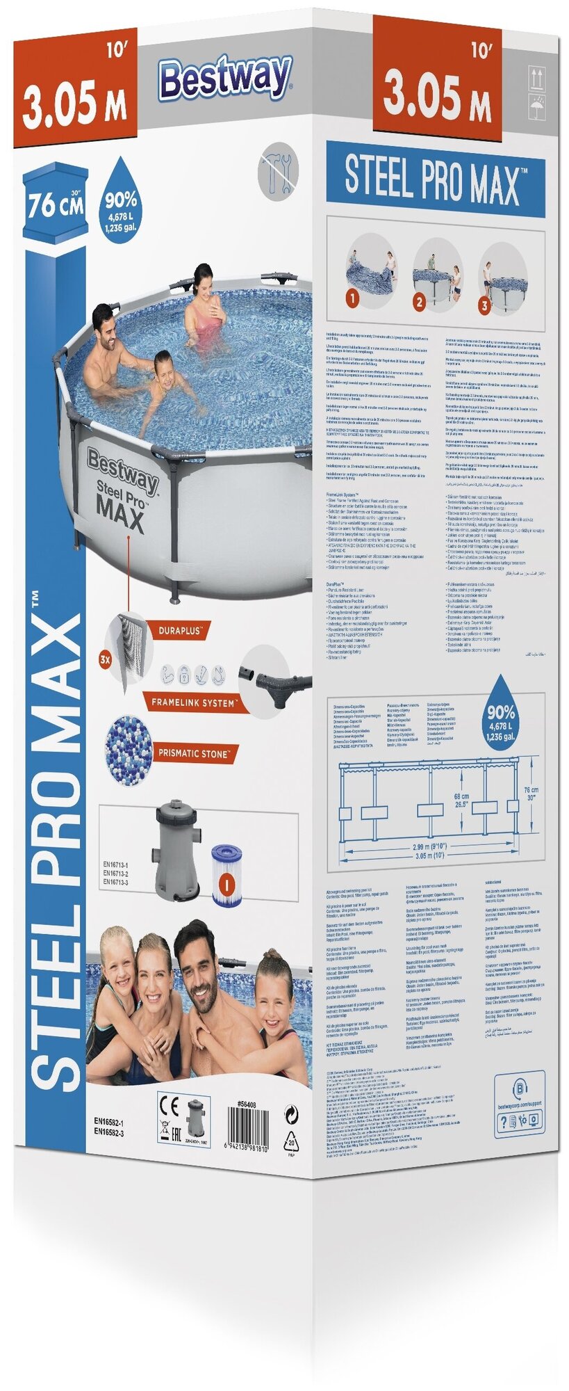 Бассейн Bestway, каркасный, диаметр 3,05 м, фильтр-насос, серый информация:
