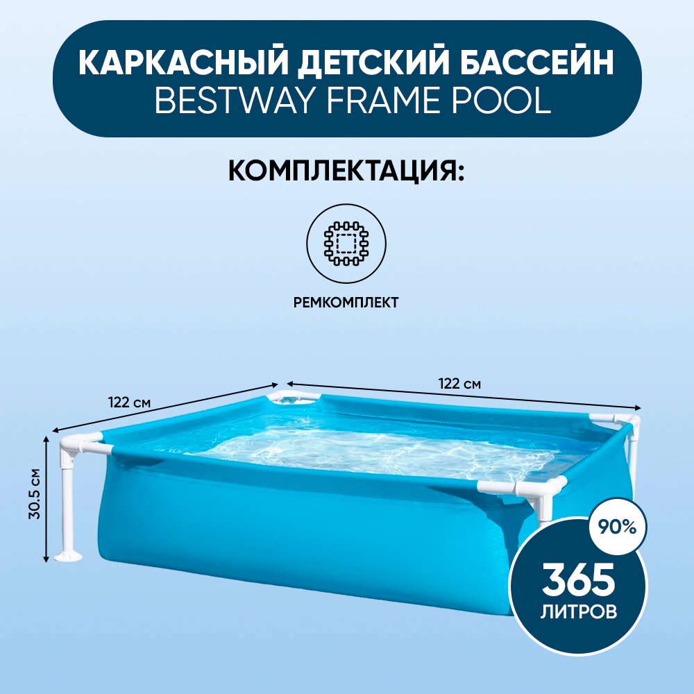 Детский бассейн Bestway "Frame Pool", каркасный, трёхслойный ПВХ, 122x122x30 см, синий информация: