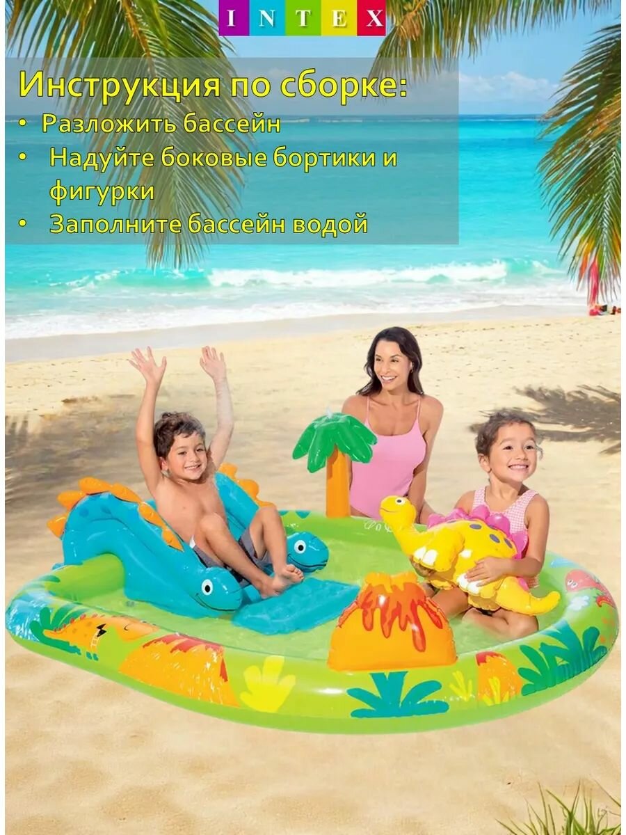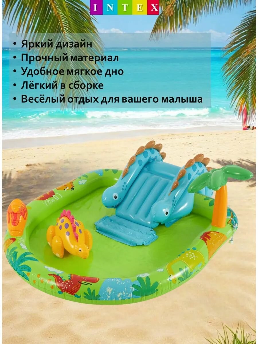 Отзывы на Intex Надувной игровой центр для детей с разбрызгивателем и горкой Динозавр Динолэнд 191х152х58 см 143л, до 54кг, от 2-х лет 57166NP