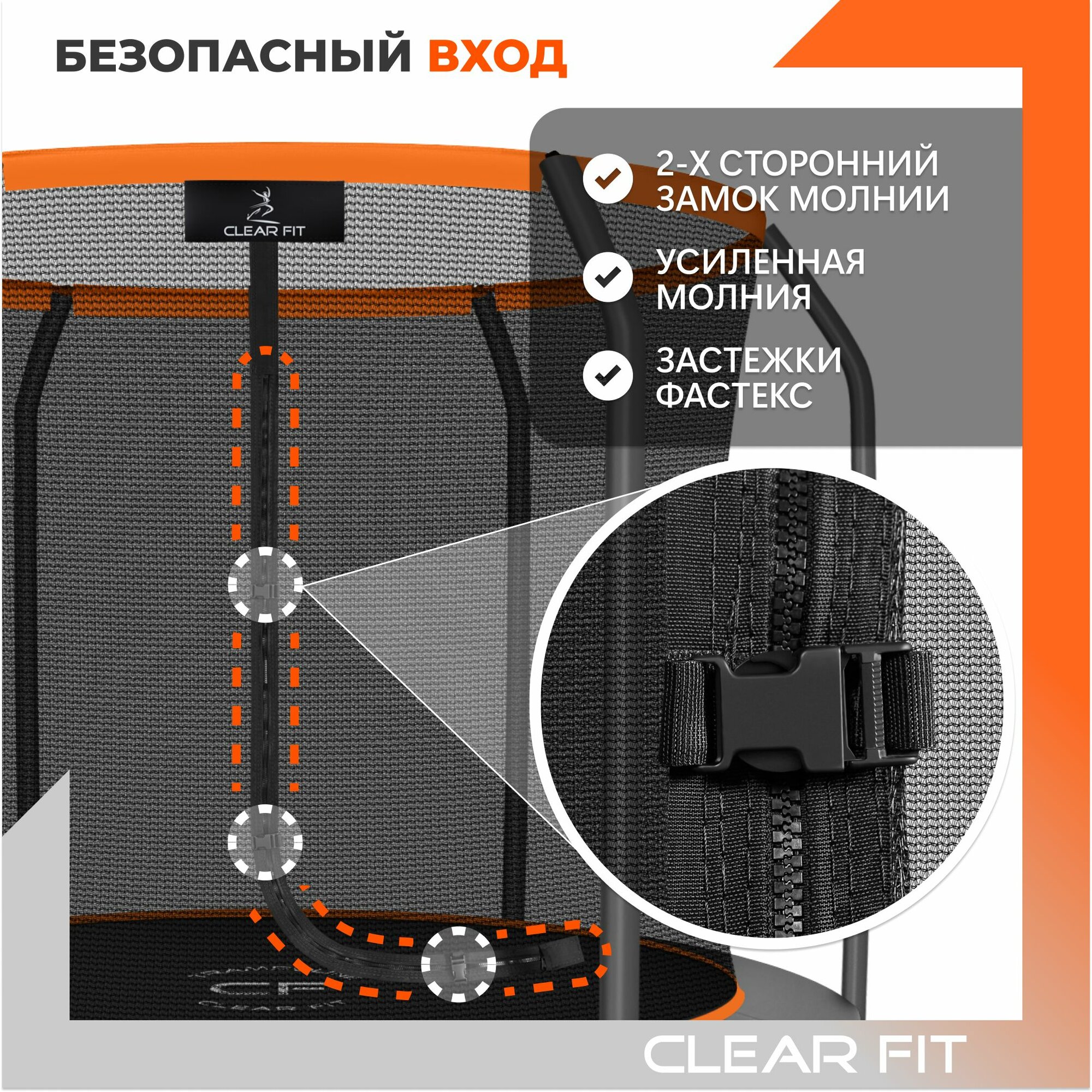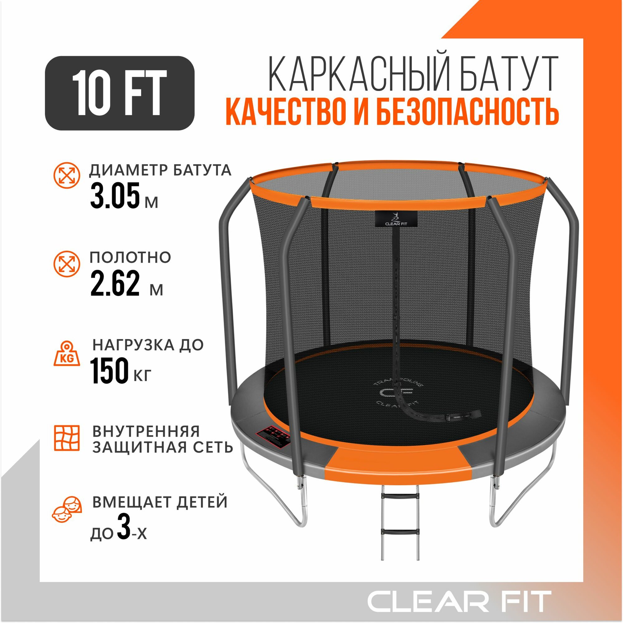 Батут каркасный Clear Fit OrangeHop 10Ft, диаметр 305 см, высота 240 см, до 150 кг информация: