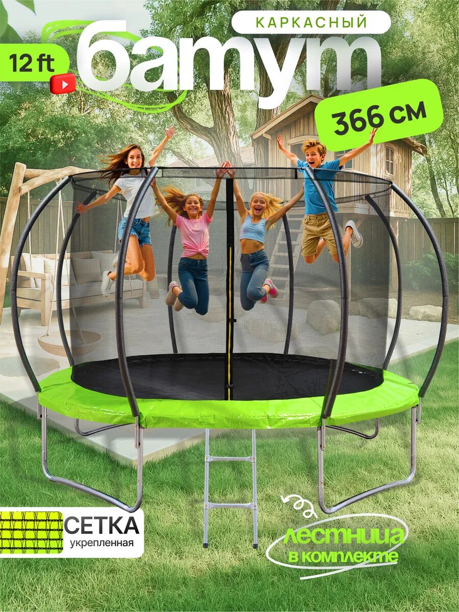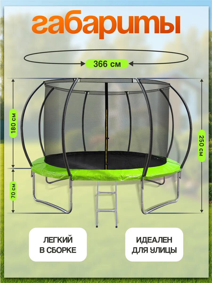 Батут BIG "12FT", с защитой пружин, детский, уличный, максимальная нагрузка 450кг информация: