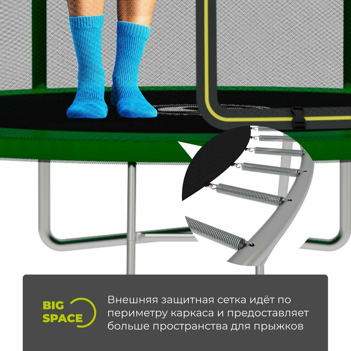 Батут с защитной сеткой SWOLLEN Lite Outside ZIP 8 FT (244 см) (Green) детский, для детей, уличный, для улицы, для дачи информация: