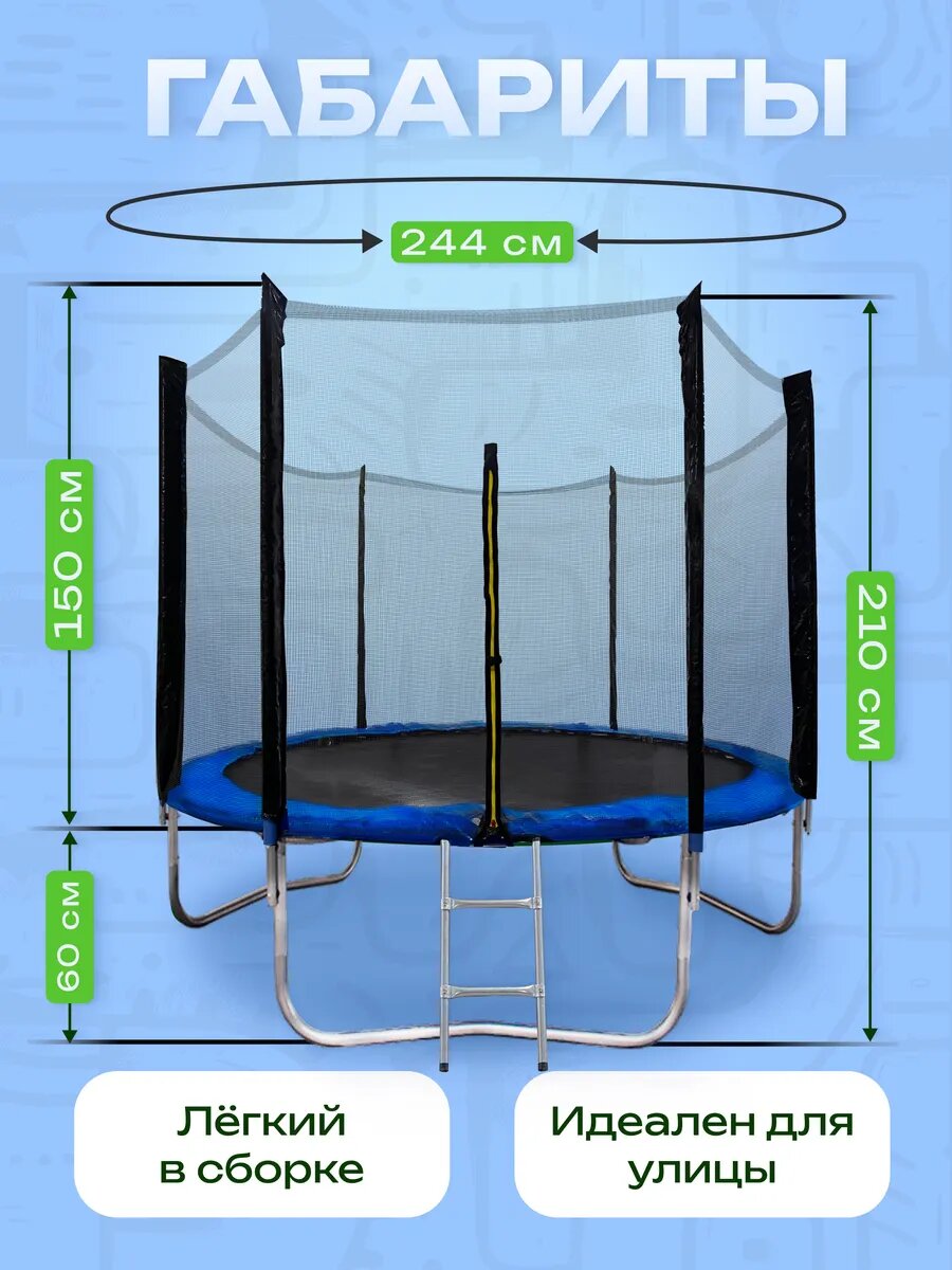 Батут для дома, для дачи, с сеткой, синий, 8 футов, максимальная нагрузка 250кг информация: