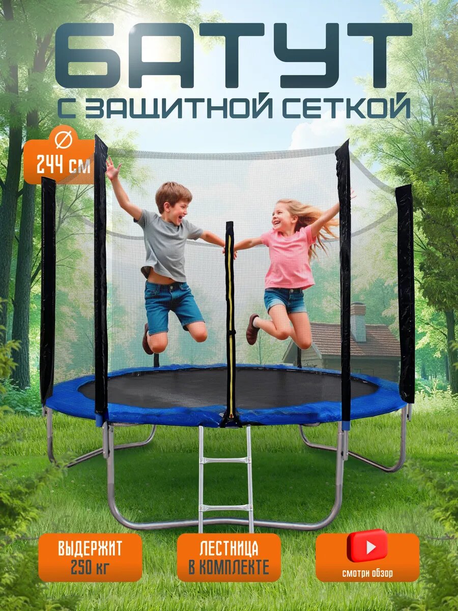 Батут уличный, 8ft, с сеткой, для детей, максимальная нагрузка 250кг, диаметр 244см информация: