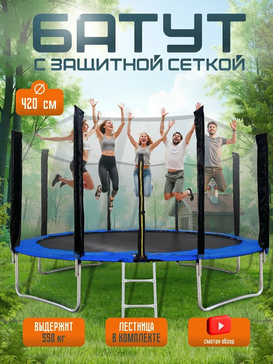 10 цен на Батут, уличный, 14ft, с сеткой, 427х370х180см, максимальная нагрузка 550кг