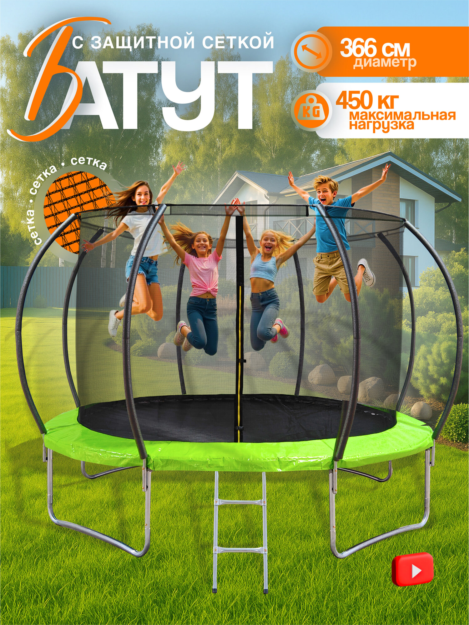 Батут детский BIG 12FT, каркасный, с сеткой, для улицы, до 450кг, 366см информация: