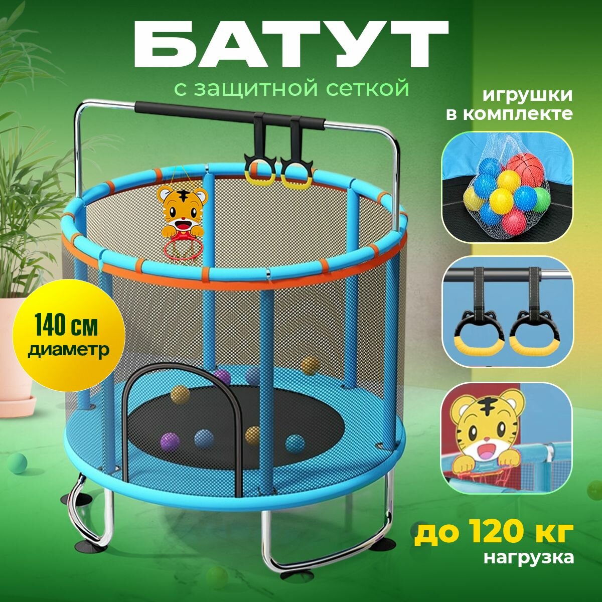 Батут каркасный с защитной сеткой, детский, с перекладиной и игрушками, для улицы и дома, 140 см, UOП-16S информация: