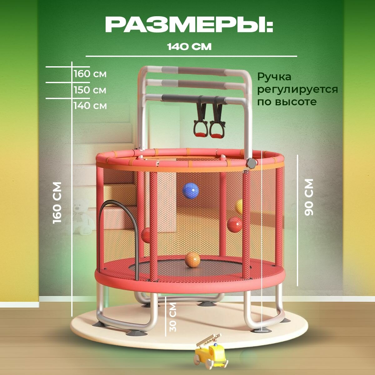 Батут каркасный с защитной сеткой, детский, с перекладиной и игрушками, для улицы и дома, 140 см, UOП-16K информация: