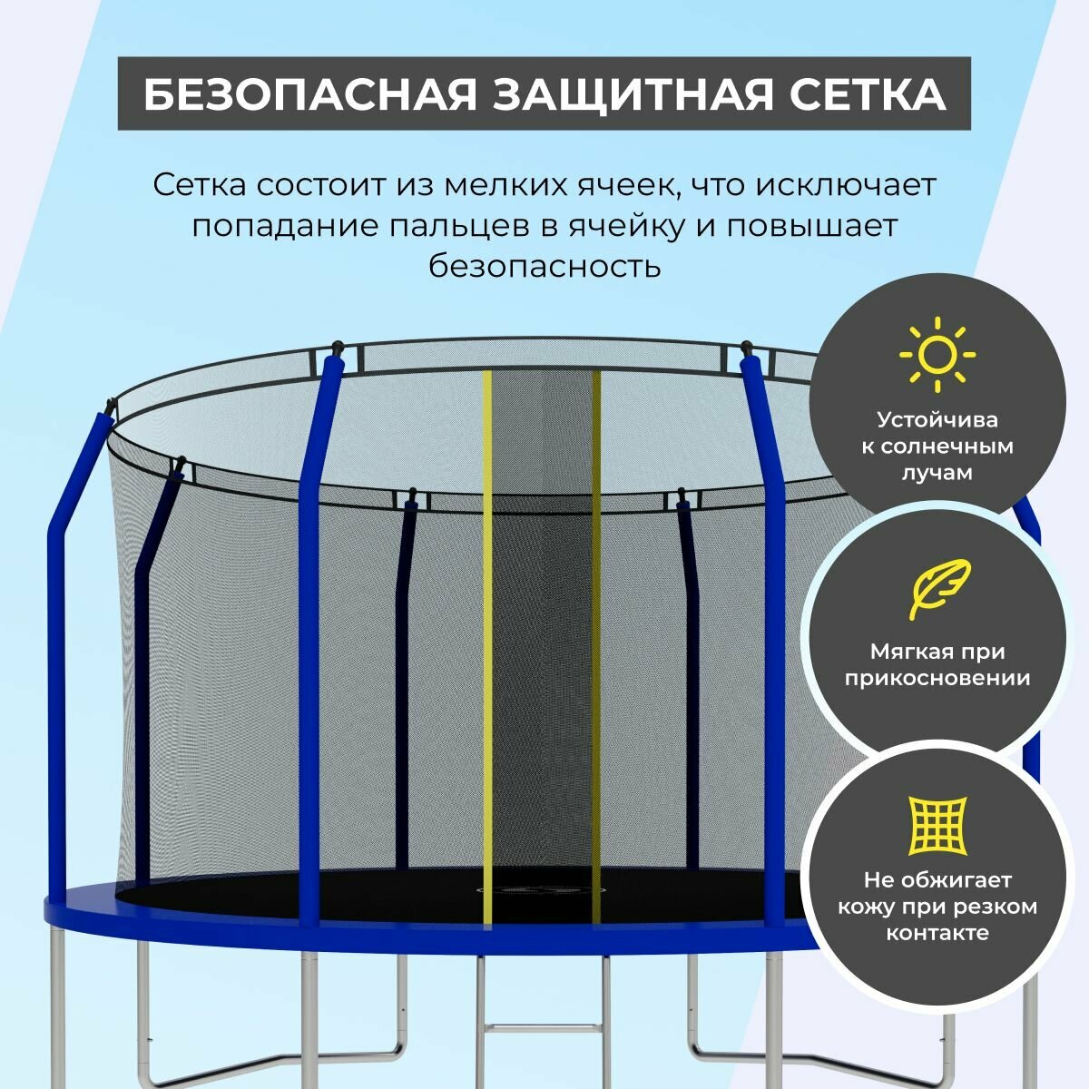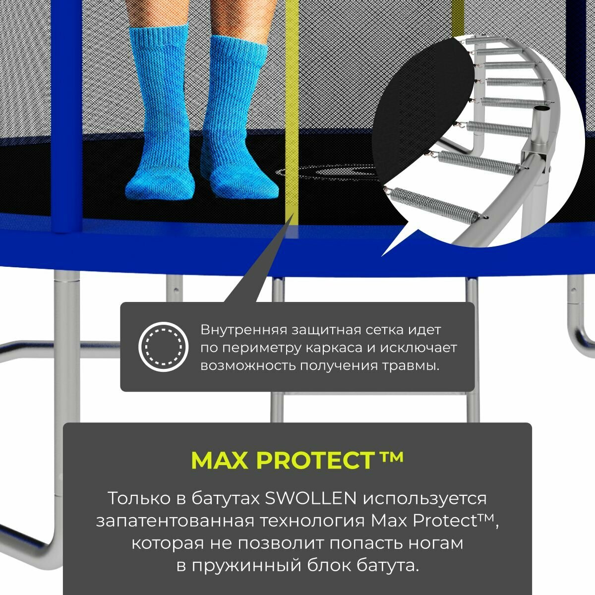 Батут с защитной сеткой SWOLLEN Comfort Overlap 12 FT (366 см) (Blue) детский, для детей, уличный, для улицы, для дачи информация: