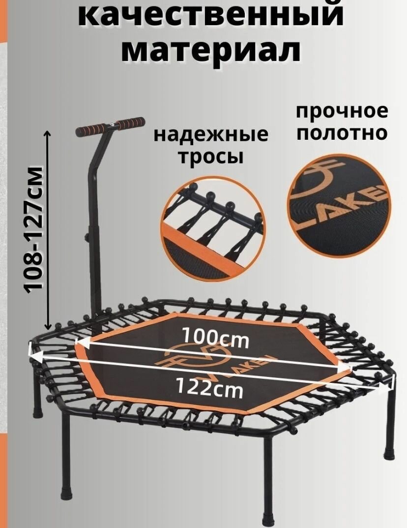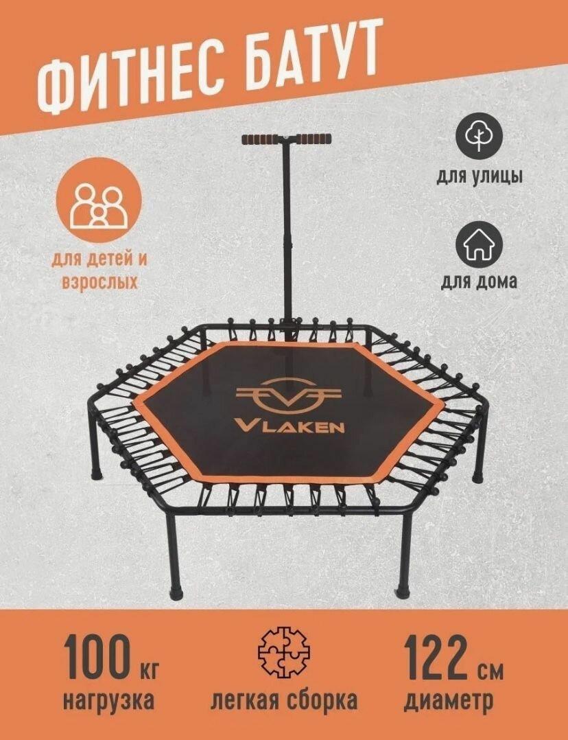 Батут Vlaken JL-006, спортивный, с ручкой, шестиугольный, 130 см, до 110 кг