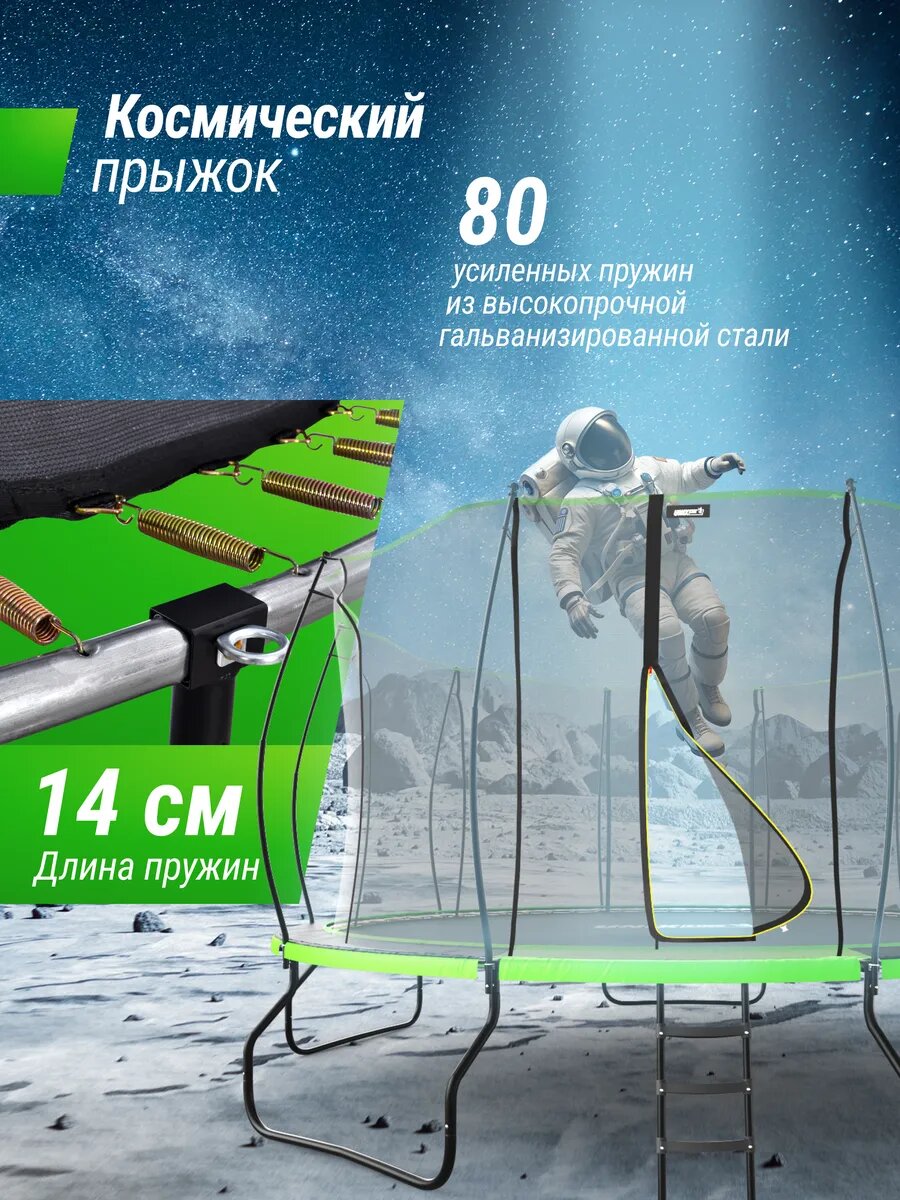Отзывы на Батут каркасный UNIX Line UFO 14 ft Green, диаметр 427 см, до 150 кг, с внутренней защитной сеткой, для дома и улицы