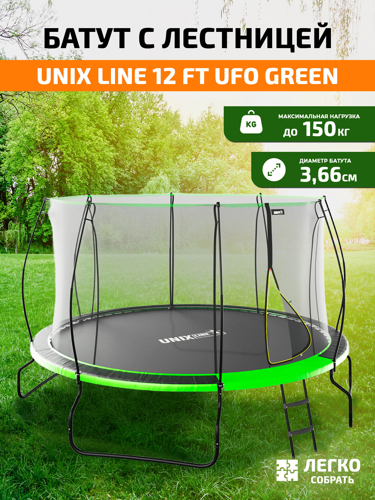 Батут каркасный UNIX Line UFO 12 ft Green, диаметр 366 см, до 150 кг, с внутренней защитной сеткой, для дома и улицы 30 588 ₽