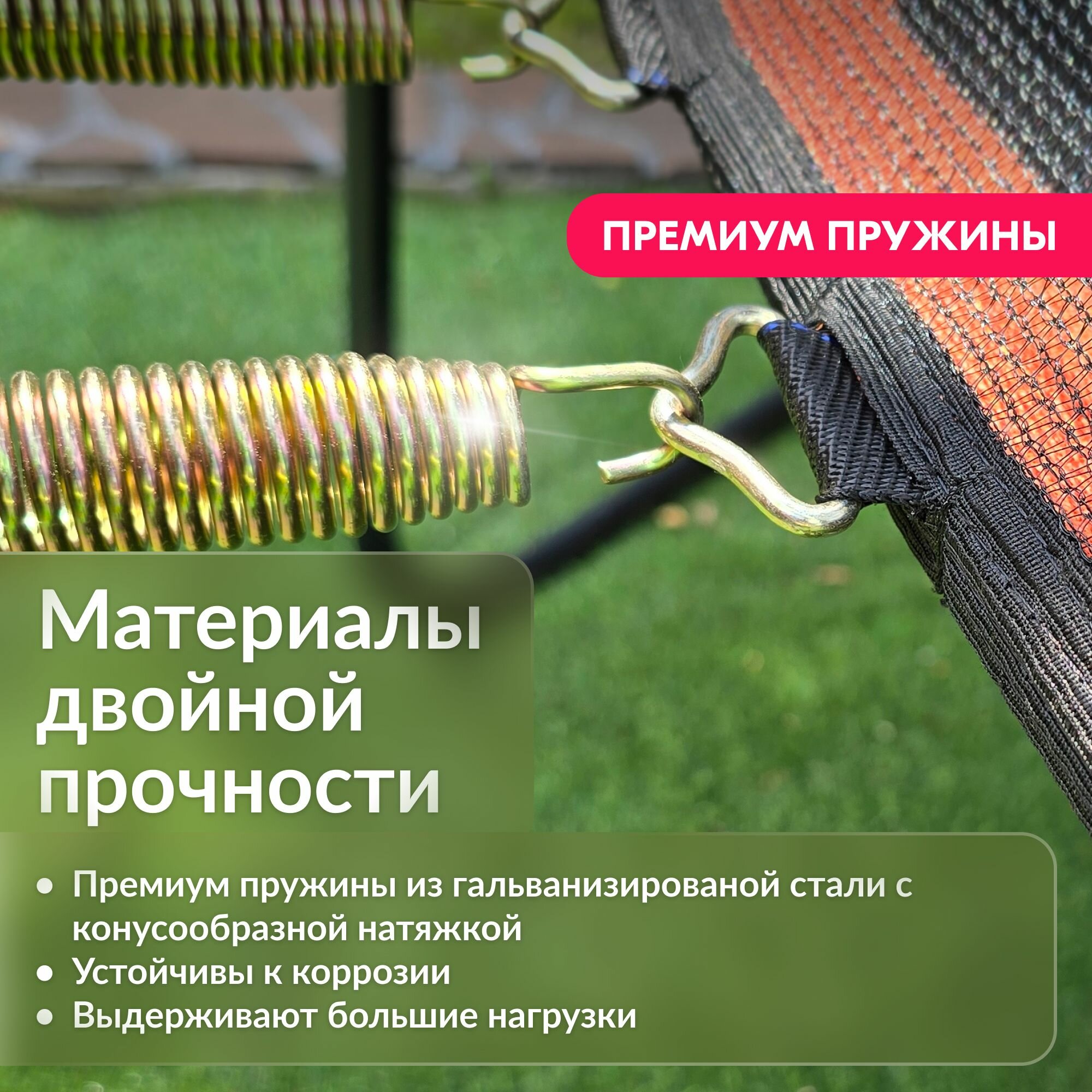 | Состав набора | Каркас батута, комплект пружин, защитный мат, верхняя защитная сетка, 2-х ступенчатая лестница, ключ для установки пружин, набор инструментов и крепежей |