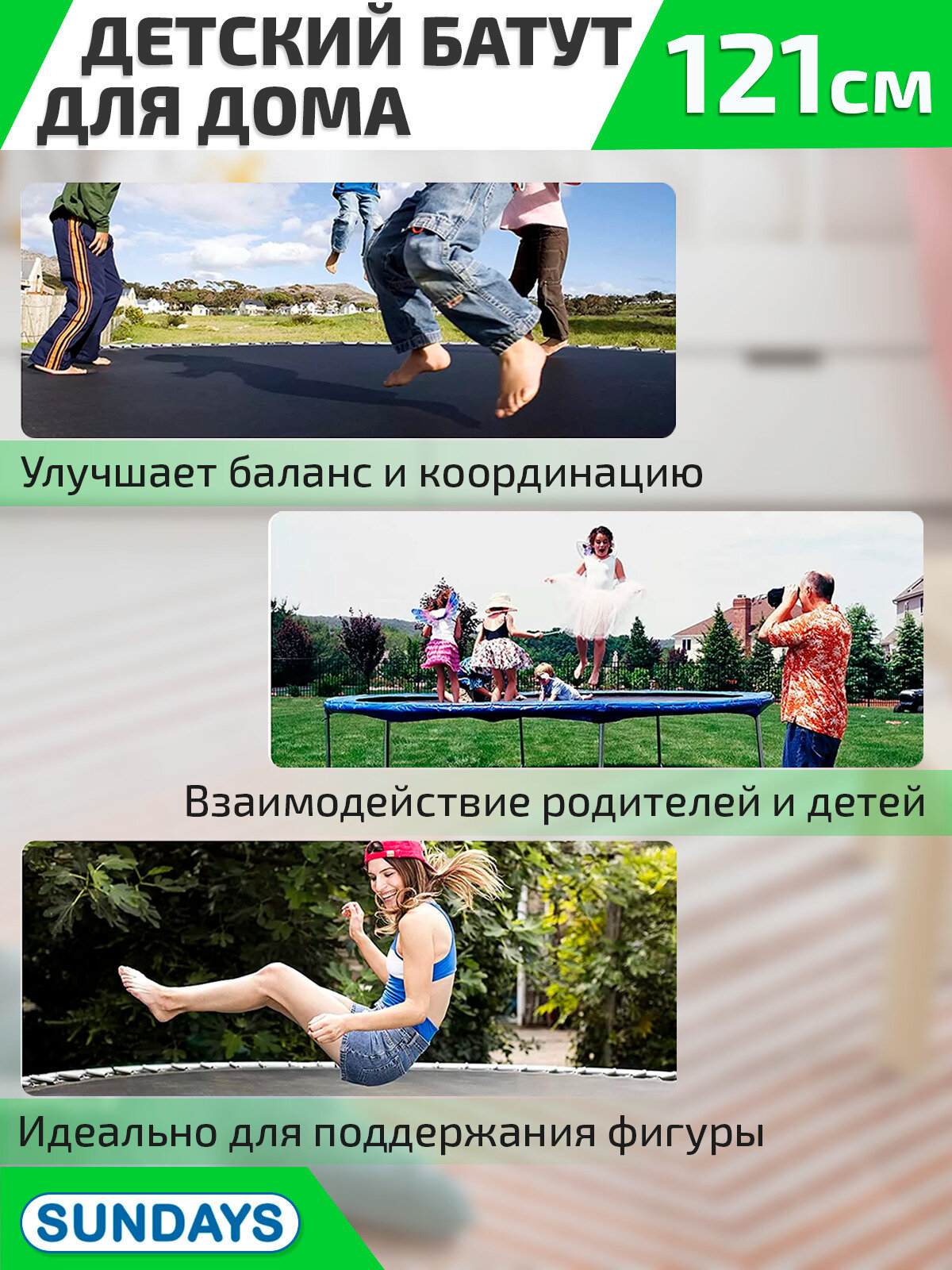 Батут каркасный детский Sundays D121 (зеленый), батут для дома, батут спортивный, фитнес батут, активные игры