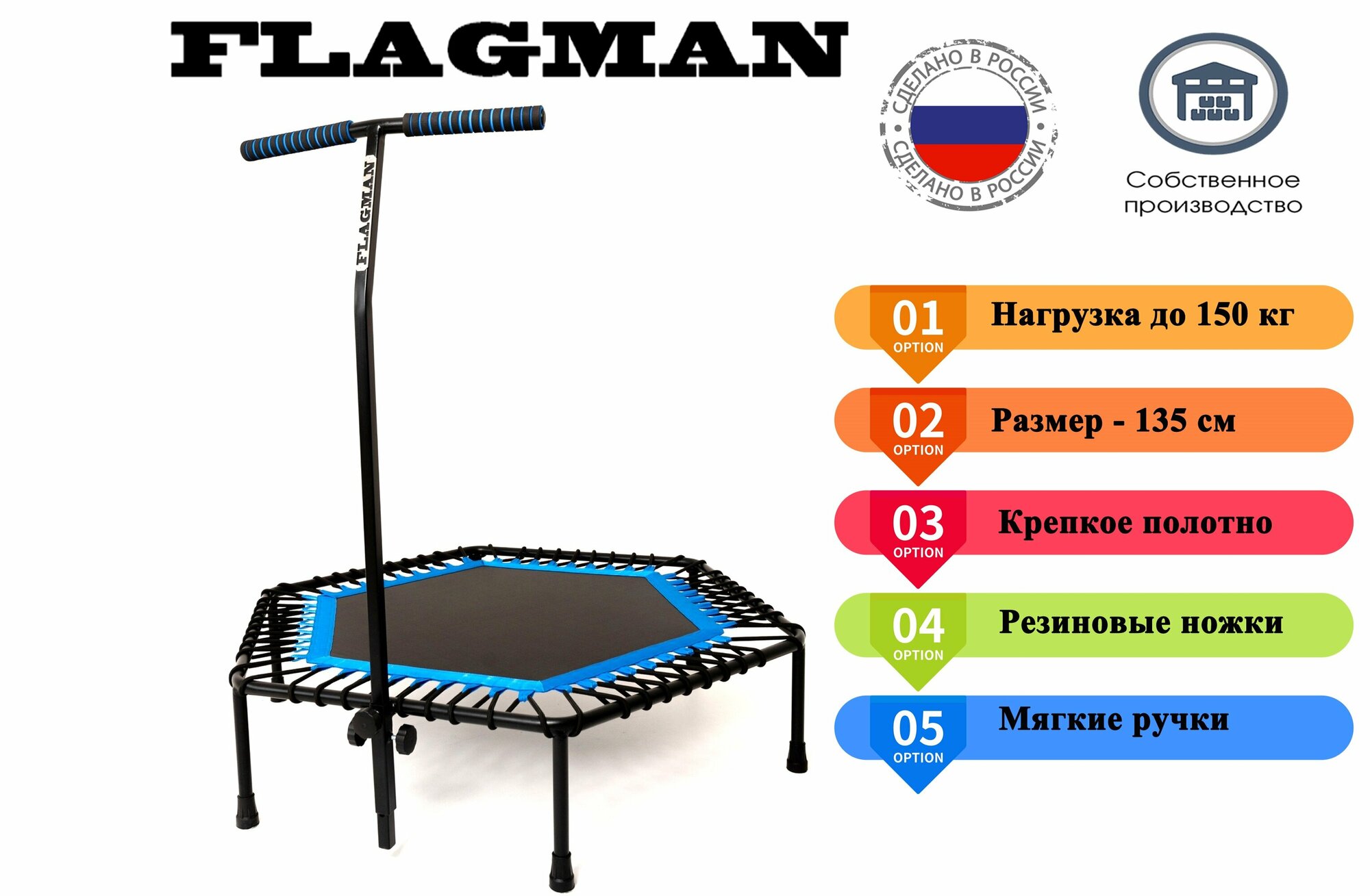 Батут для фитнеса FLAGMAN 135см, с ручкой, максимальная нагрузка 150кг. Цвет синий информация: