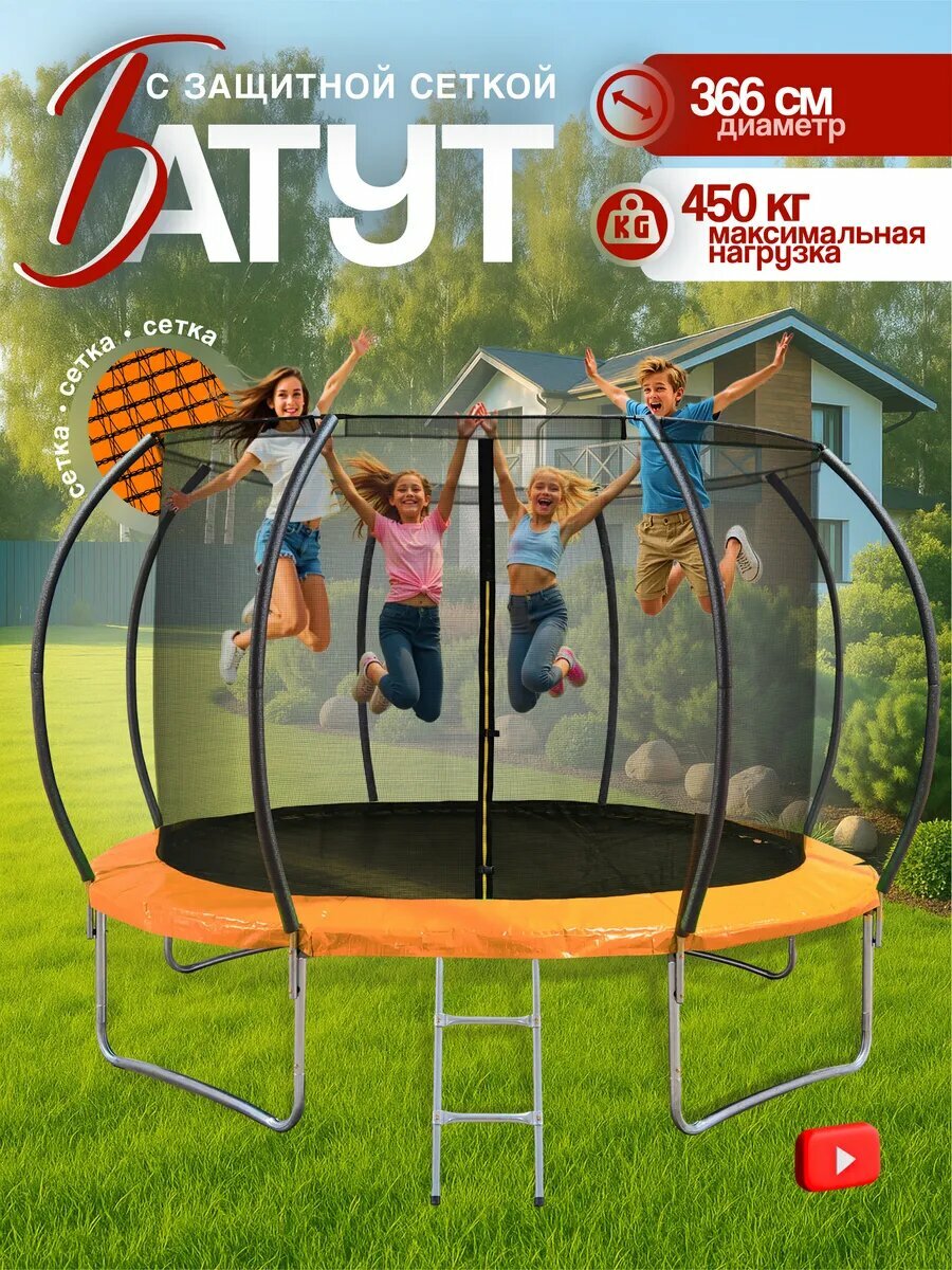 10 цен на Батут каркасный детский с защитной сеткой уличный, для дачи, 366см