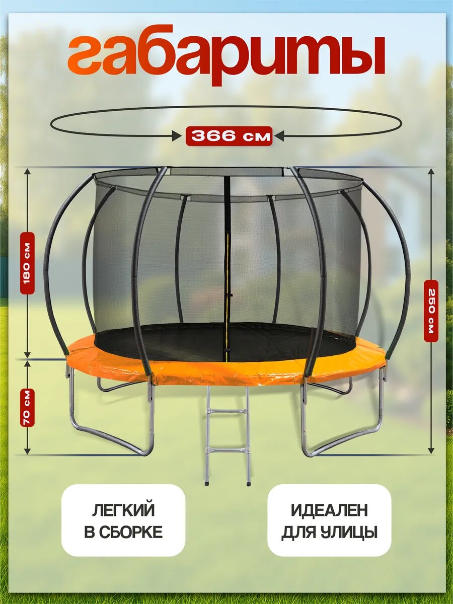 Батут каркасный детский с защитной сеткой уличный, для дачи, 366см информация: