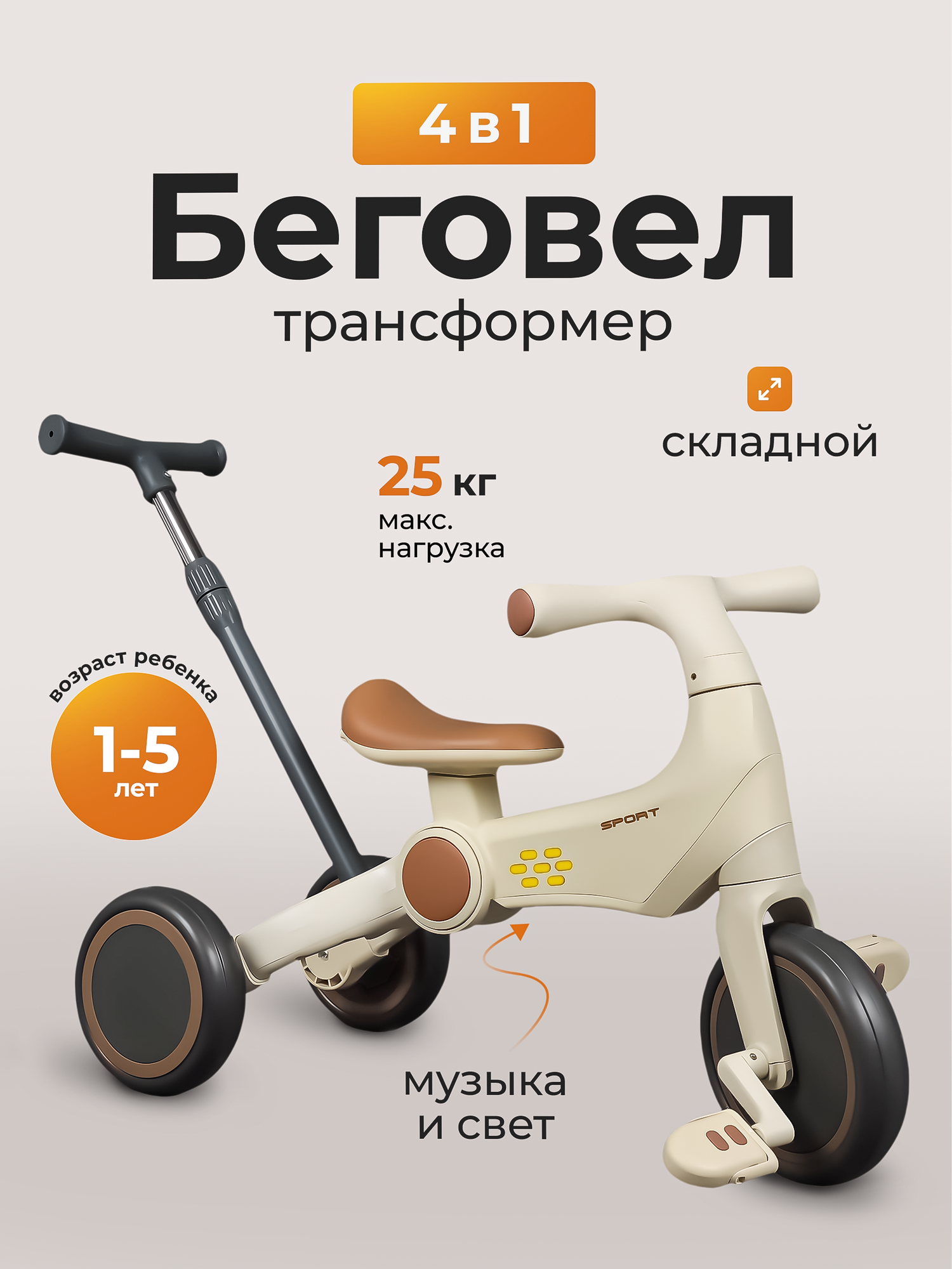 10 цен на Беговел-велосипед детский 4 в 1 с ручкой складной музыкальный