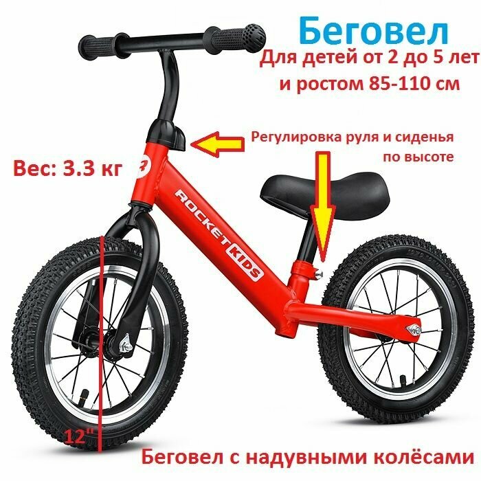 Беговел с надувными колёсами 12", от 2 до 5 лет информация: