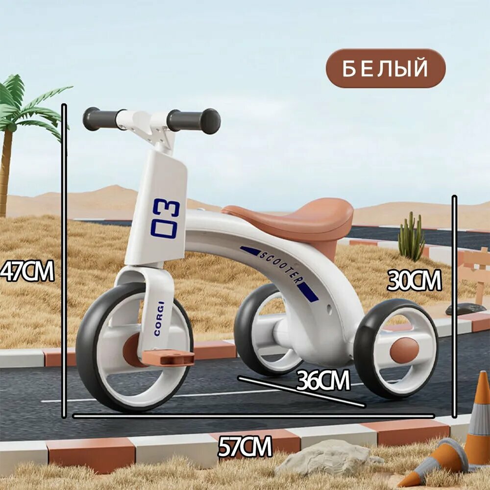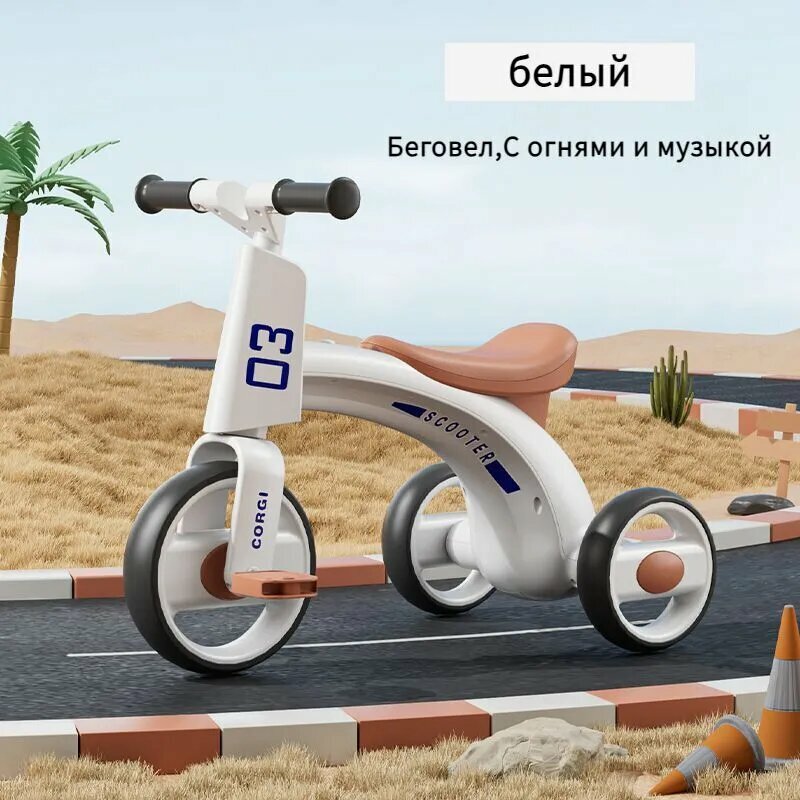 Отзывы на Детский балансировочный велосипед, педальный, со светом и музыкой, белый