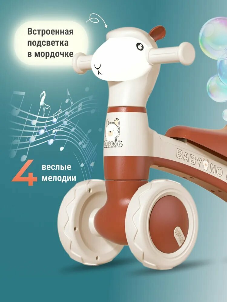 Беговел для малышей от 1 года с подсветкой музыкой и мыльными пузырями информация: