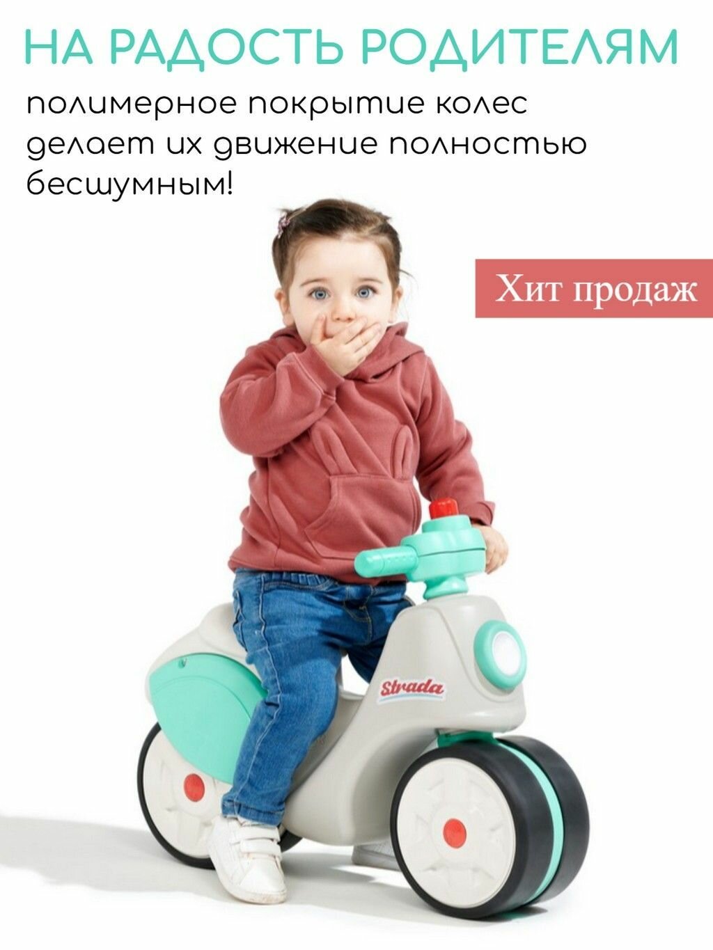 Беговел каталка талокар, 4 колеса, для детей от 6 месяцев, бесшумный, с подсветкой, цвет белый и зелёный