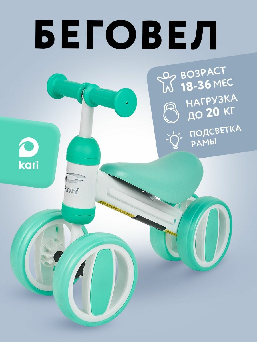 Беговел каталка талокар, 4 колеса, для детей от 6 месяцев, бесшумный, с подсветкой, цвет белый и зелёный