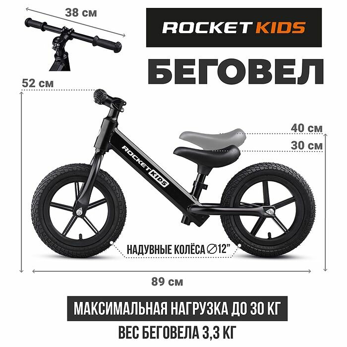 Беговел детский 12" Rocket, колеса надувные, алюминиевая рама, цвет черный ROCKET информация: