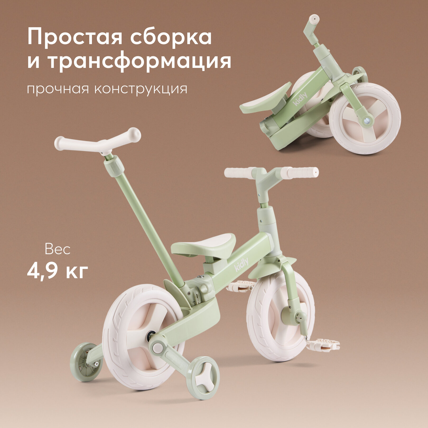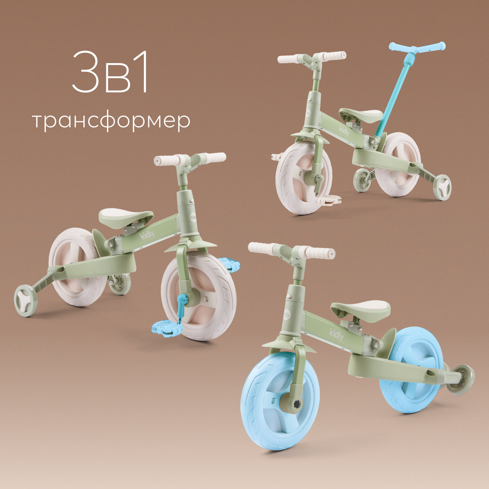 10 цен на 50051, Беговел-трансформер KIDLY от Happy Baby, беговел двухколёсный, четырехколёсный велосипед, 3в1, оливково-бежевый