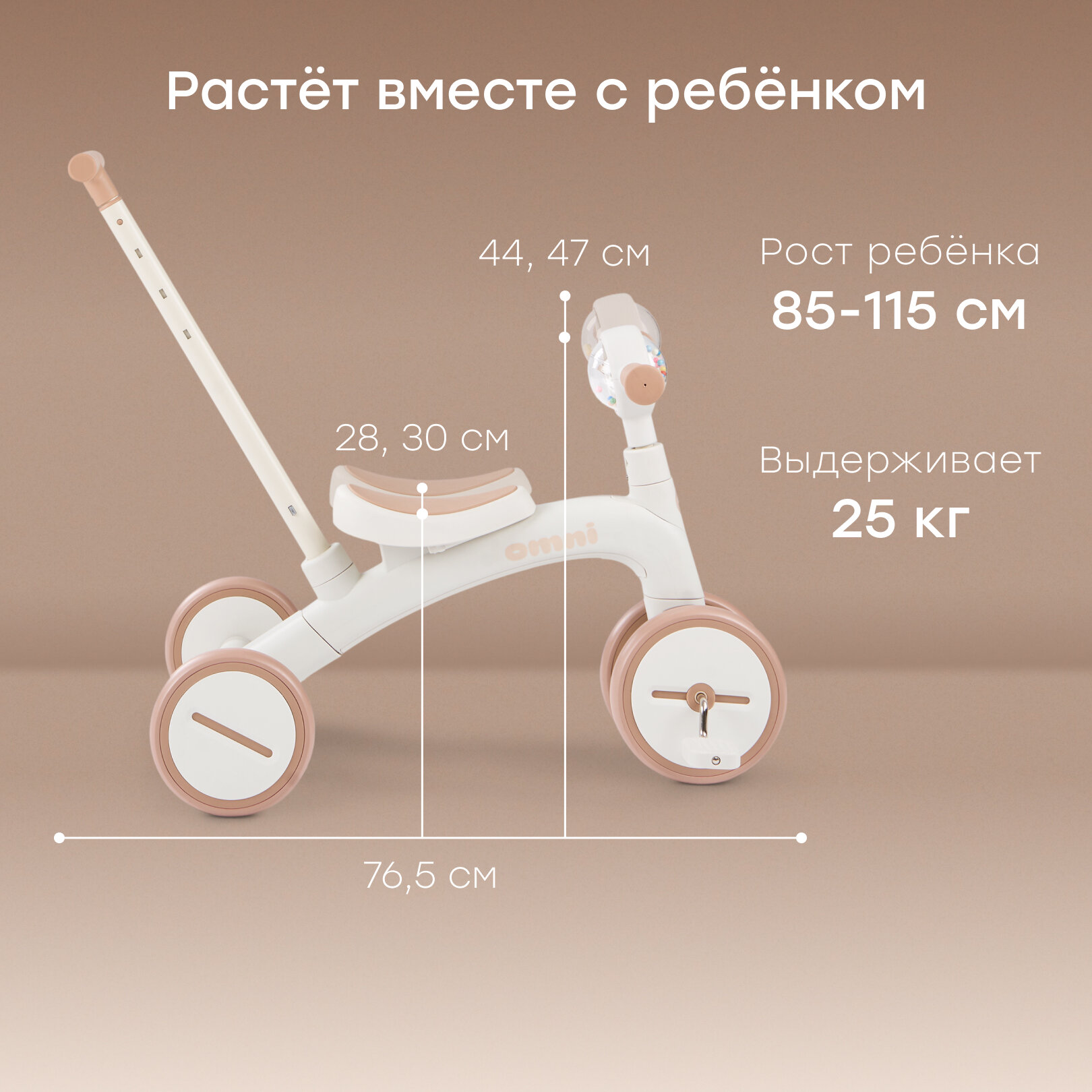 50050, Беговел детский от 1.5 OMNI, беговел трансформер двухколёсный-трехколесный, трёхколёсный велосипед, 3в1, бежевый