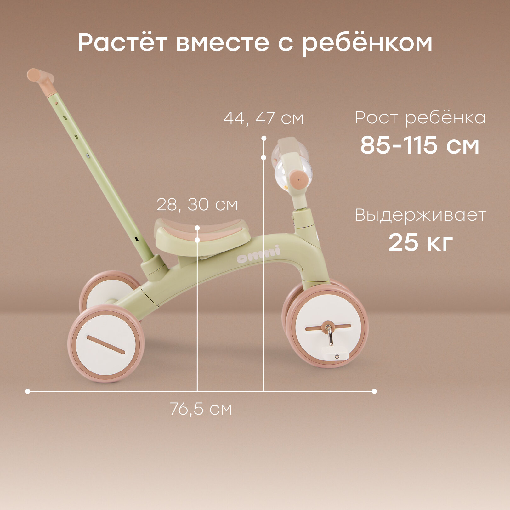 50050, Беговел детский от 1.5 OMNI, беговел трансформер двухколёсный-трехколесный, трёхколёсный велосипед, 3в1, зеленый информация: