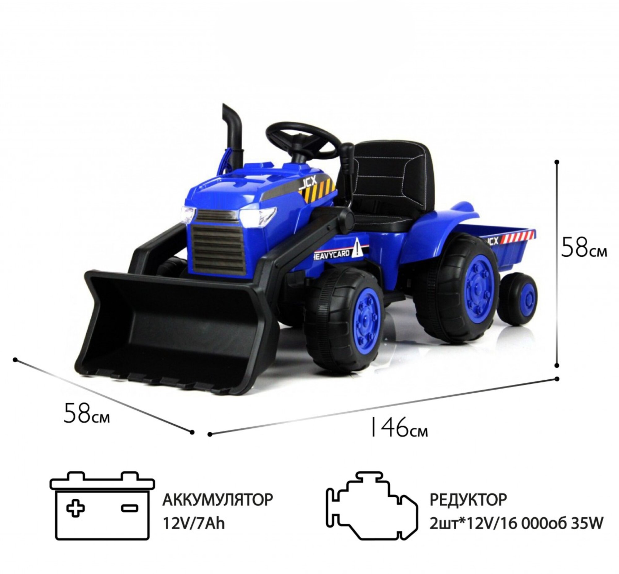 Электромобиль NovaKIDS Трактор JCX с ковшом и прицепом, Синий информация: