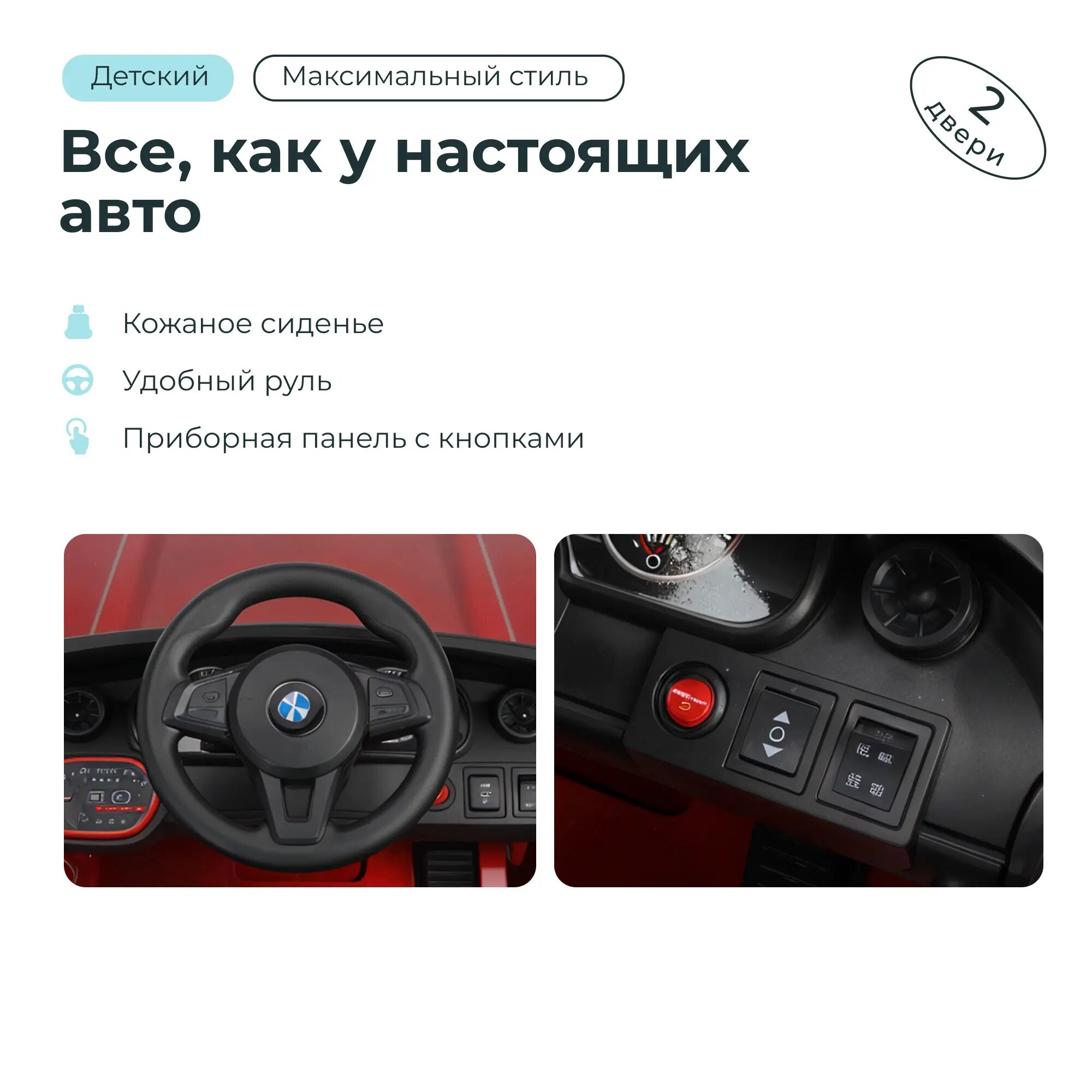 Детский электромобиль BMW с Bluetooth, двухместный, красный 18 243 ₽