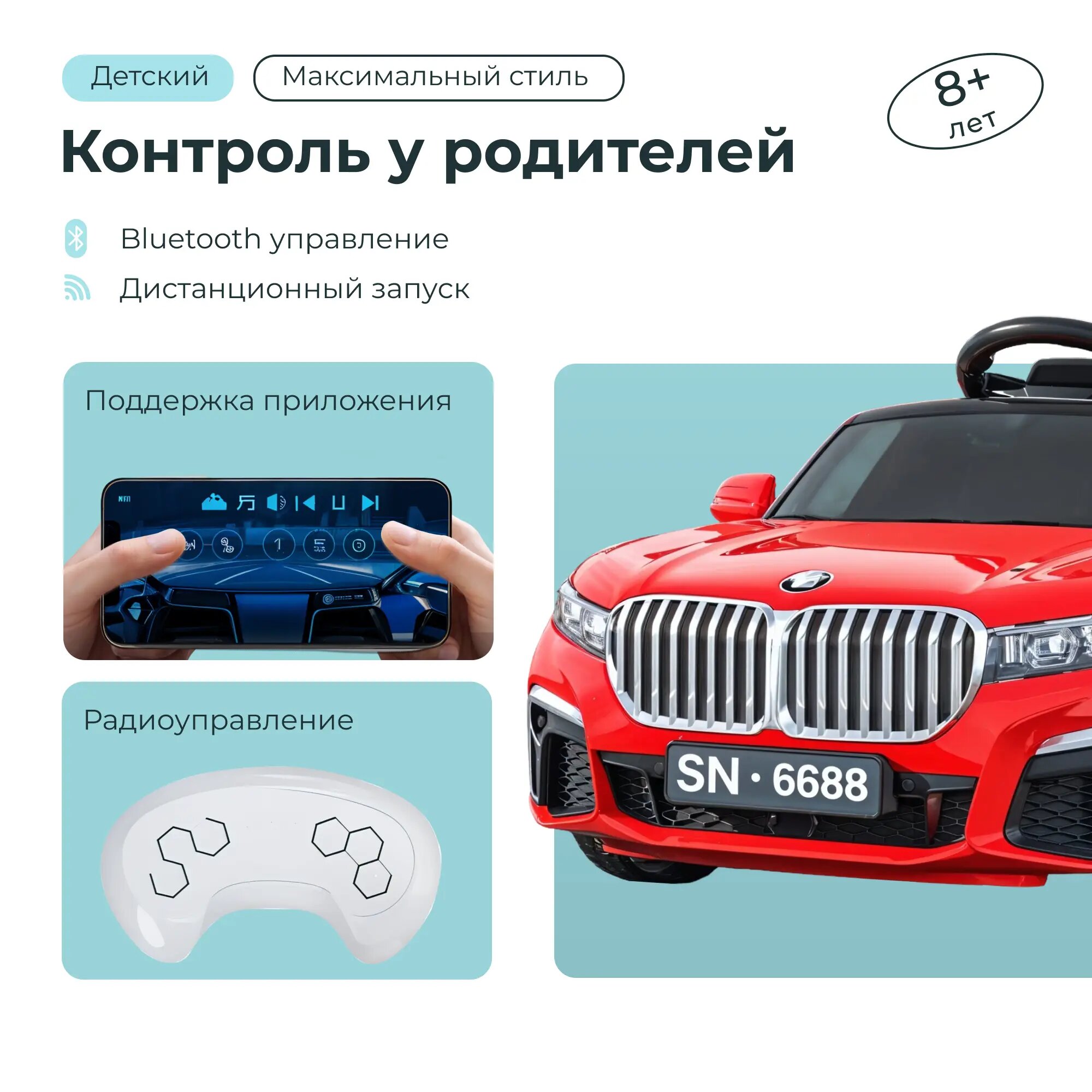 Полноприводный красный электромобиль для детей с Bluetooth и большой емкостью аккумулятора 18 605 ₽