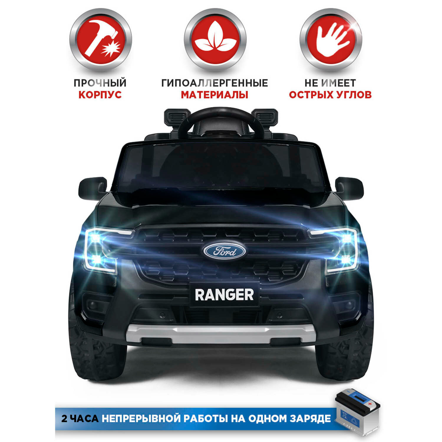 Электромобиль Babycare "Ford Ranger", для детей, задний ход, до 5км/ч, черный, 12В/24Ач информация: