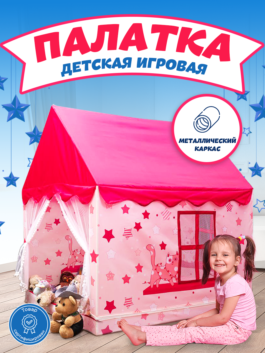 Палатка игровая детская Aiden Kids, разборная, каркас из металла, розовая информация: