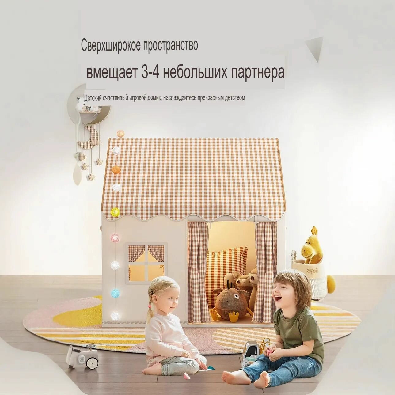 Игровой детский домик BAOBAO, для улицы и квартиры, с ковриком и сумкой для хранения информация: