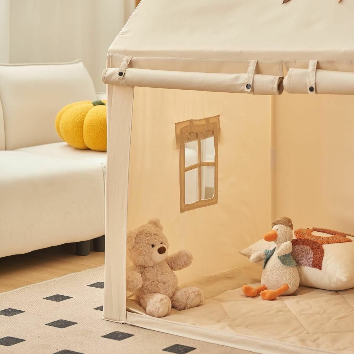 Вигвам детский с пышным ковриком "Бежевый". Палатка игровая
