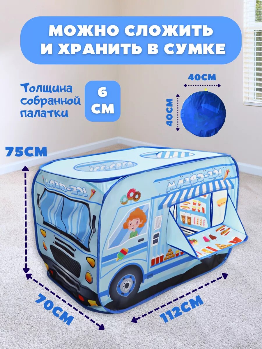 Отзывы на Палатка игровая DecorLX "Мороженое", в виде домика, голубая, полиэстер, 112х70х75