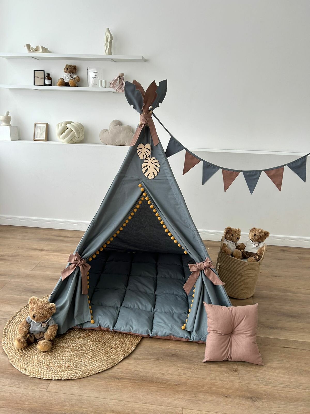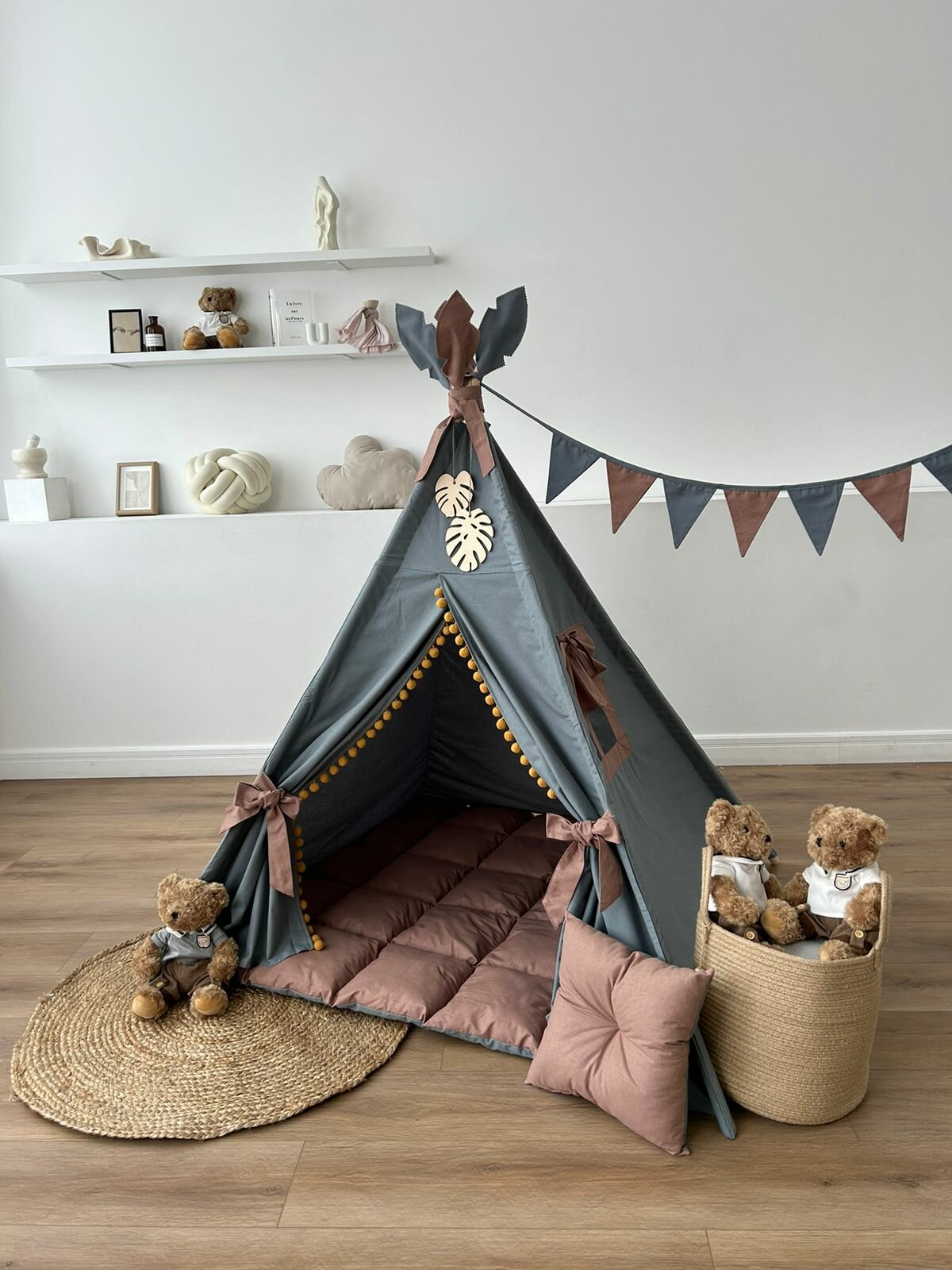 Вигвам babysmail, с ковриком, подушкой, флажками, дерево, ткань информация:
