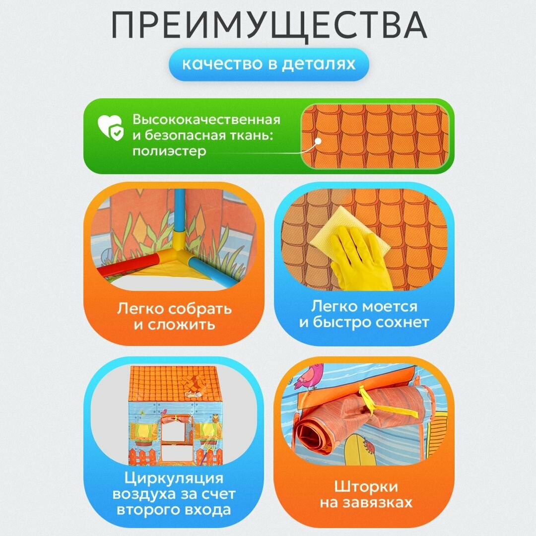 Палатка детская игровая (в коробке) "Домик в деревне" шатер для детей 95х72х102 см. Артикул 8164 информация: