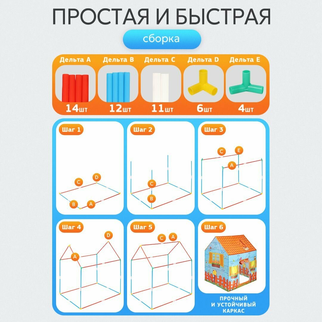 Отзывы на Палатка детская игровая (в коробке) "Домик в деревне" шатер для детей 95х72х102 см. Артикул 8164
