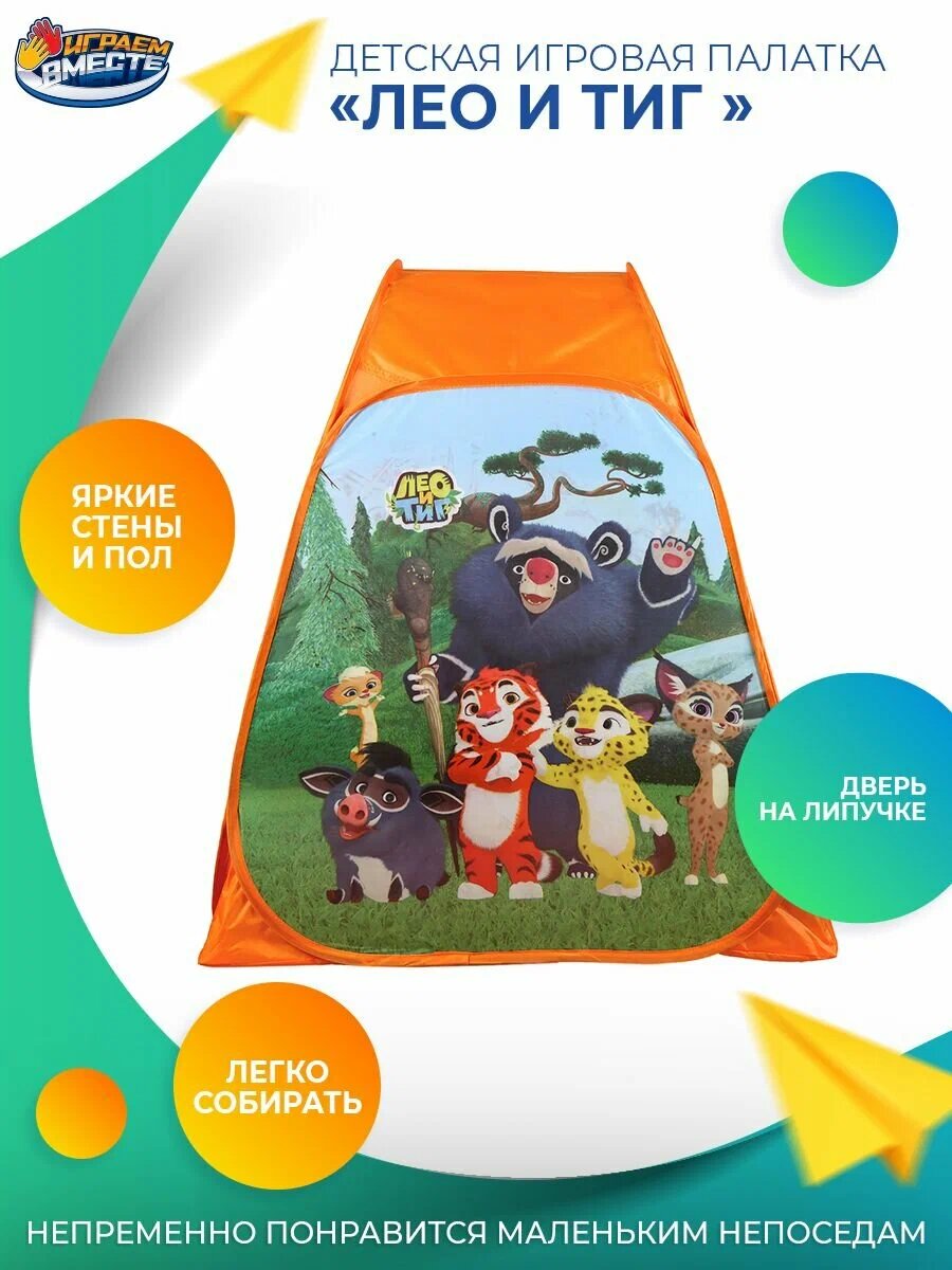 10 цен на Детская палатка "Лео и Тиг" GFA-LEOTIG01-R, 81x90x81 см, сумка в комплекте, от 3 лет