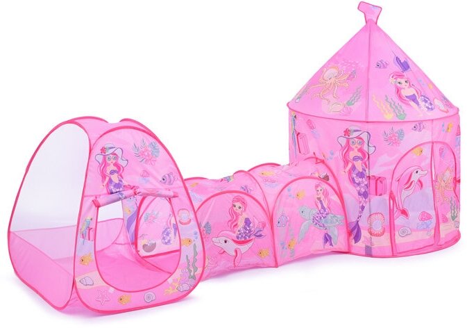 Палатка - домик детская игровая с туннелем Oubaoloon 9075 "Приключения русалки", 290х100х130 см, самораскладывающаяся, розовая в сумке информация: