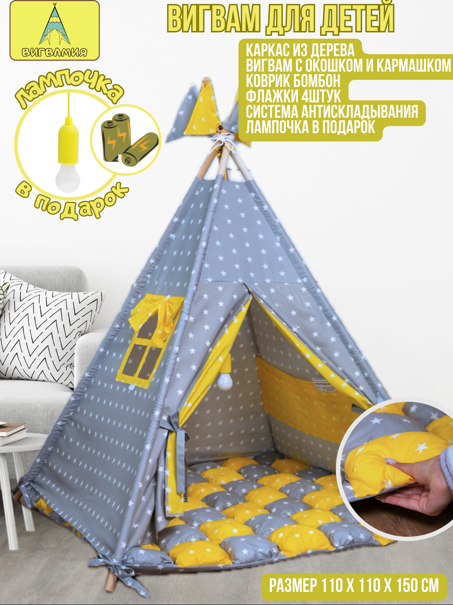 Отзывы на Вигвам детский вигвамия Солнечный домик с ковриком бомбон и флажками
