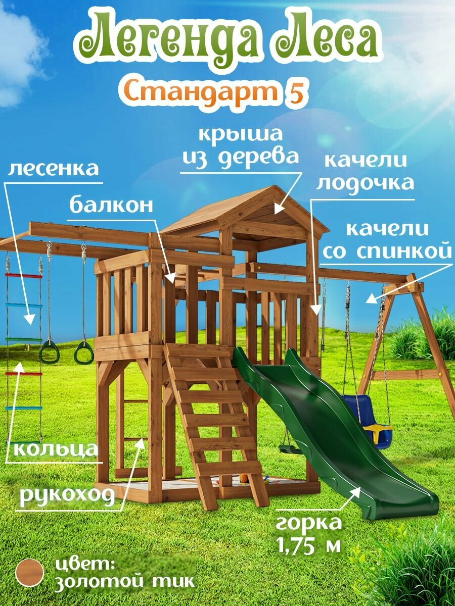 Детская площадка легенда леса стандарт 5 Золотой Тик с рукоходом, балконом и горкой 1.75м для улицы / Игровой комплекс для дачи информация: