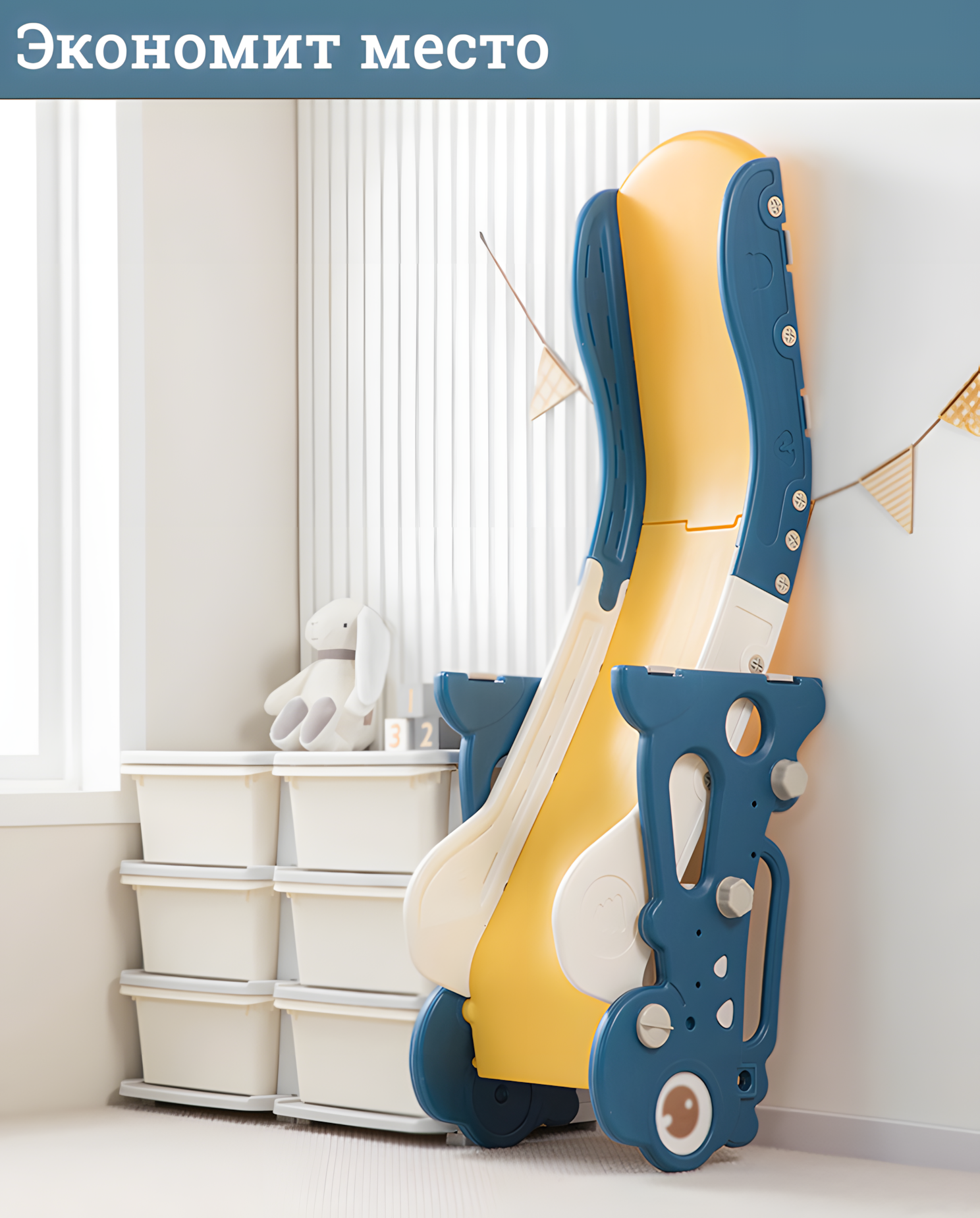 Детская горка с динозавриком, складная, многофункциональная, желто-синяя + баскетбольное кольцо 4 043 ₽