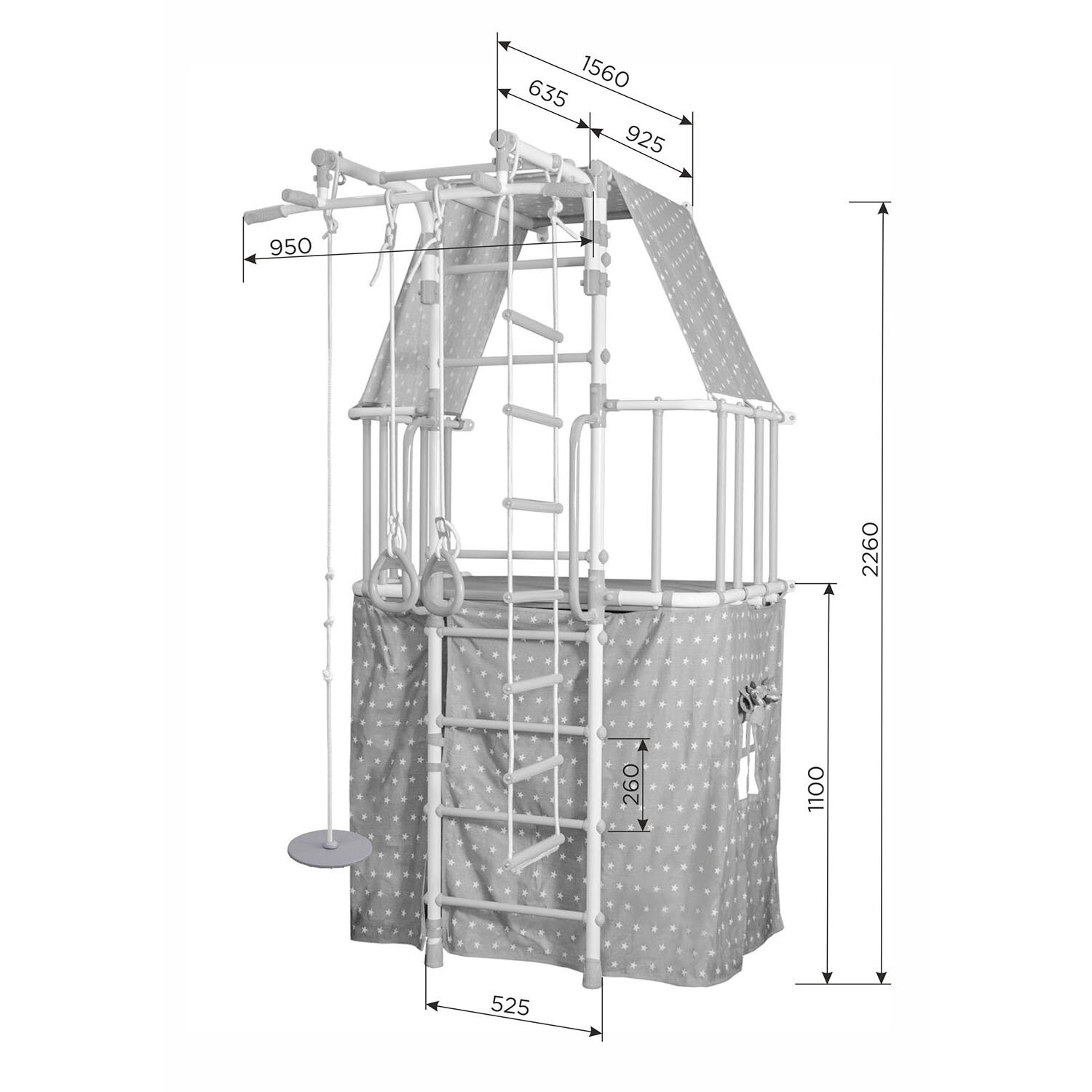 | В комплекте | веревочная лестница, гимнастические кольца, домик, лестница, тарзанка |