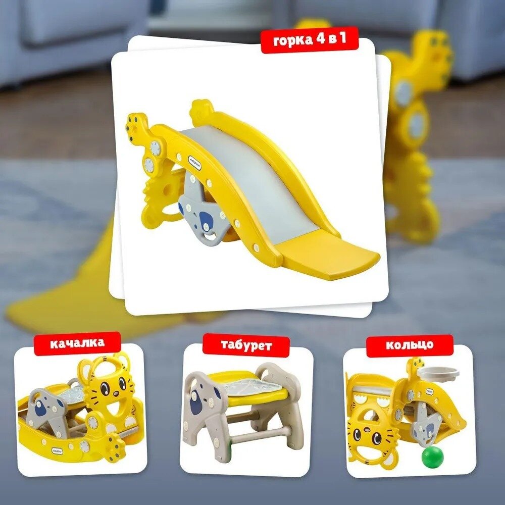 Горка детская 5 в 1 Тигр желтый, баскетбол, качалка, горка, стул, ловушка, 60150046 информация: