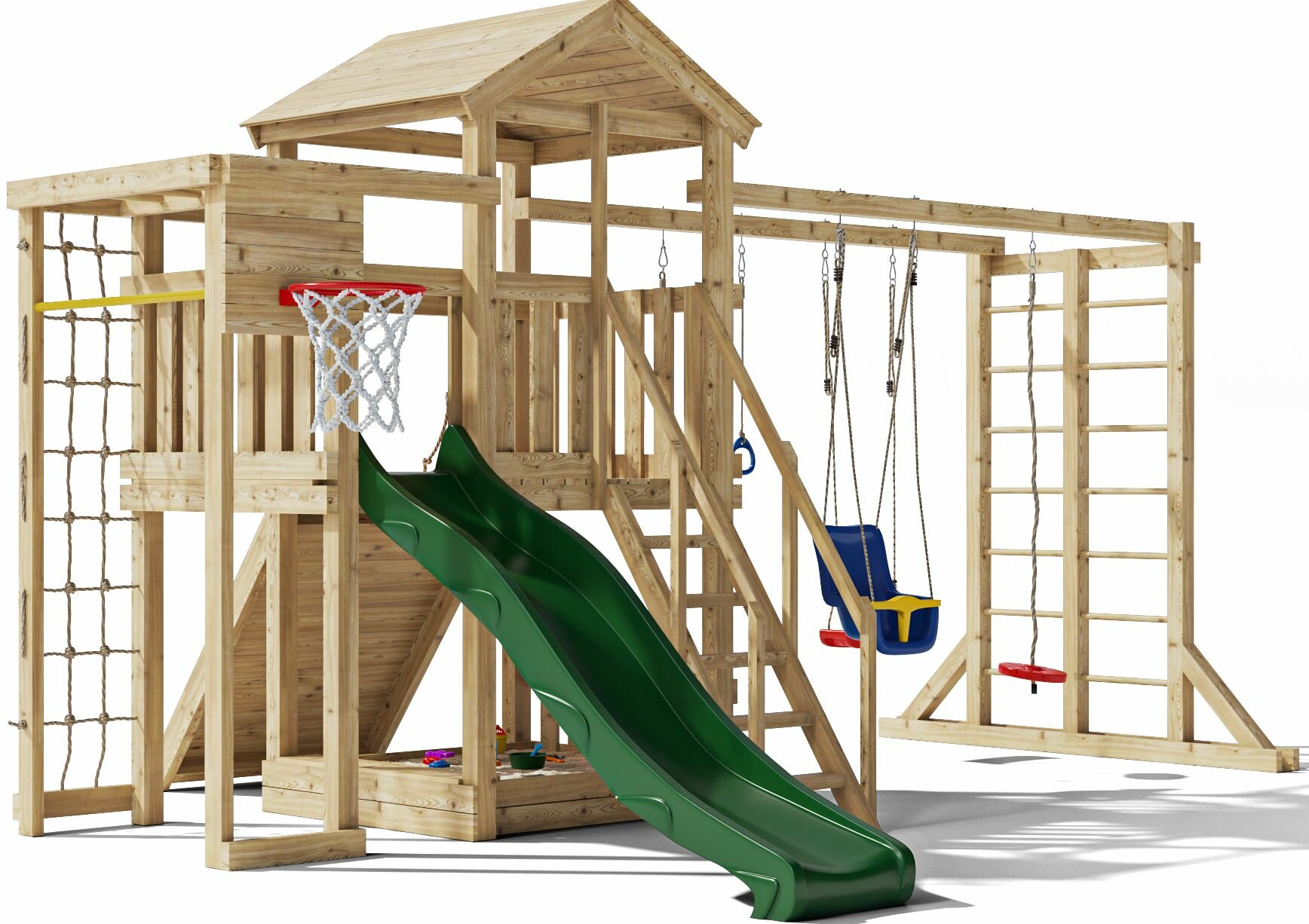 Детская площадка легенда леса удачная 7 с расширенными качелям, спортивным комплексом, рукоходом и горкой 2,2м информация: